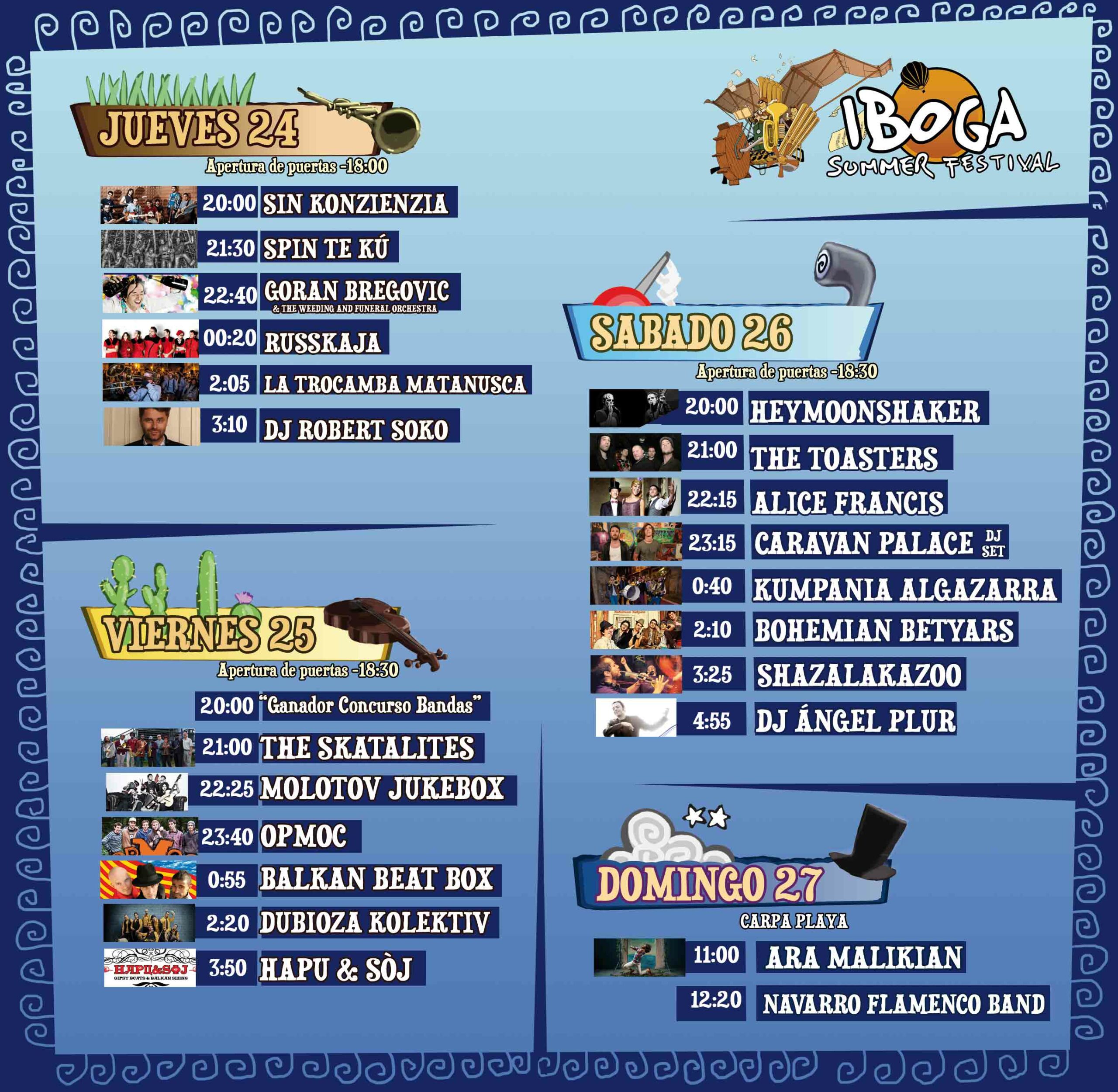 En aquesta edició aposten fort amb artistes coneguts mundialment com Goran Bregovic o Balkan Beat Box. Adverteixen que: “no vos perdeu ni un concert, perquè el nostre filtre per a seleccionar el Line-up ha sigut molt estricte: ens han posat els pèls de punta ballant!! Així que molt ull perquè futures promeses deixaran impressionat al públic amb les seues actuacions en el gran escenari Iboga“.