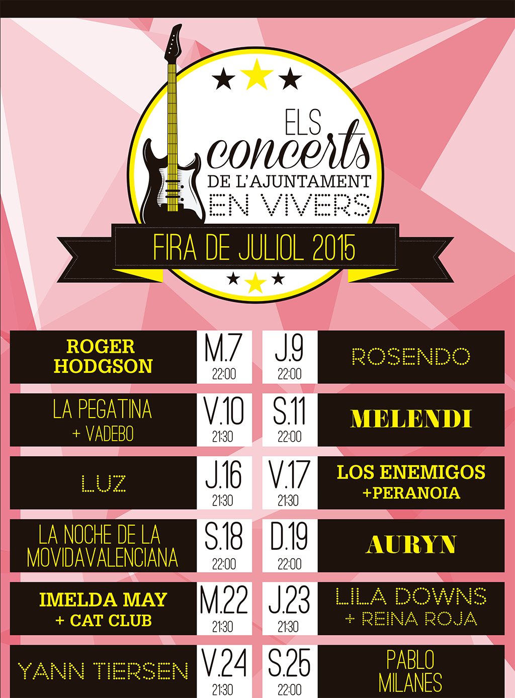 En aquesta fira d’origen decimonònic, el parc més gran del Cap i Casal reunirà molts més artistes internacionals d’èxit com un dels fundadors de la mítica formació Supertramp, el britànic Roger Hodson, qui inaugura l’escenari de Vivers; o la irlandesa Imelda May, qui amb el rock and roll dels 50′ i 60′ ens retrotraurà als temps d’Elvis Presley. La polifacètica Lila Down, des de Mèxic, importarà la música del seu país d’origen: folk, boleros, cúmbies o jazz. Però a més a més la dècada valenciana dels ’80 estarà representada per molts artistes que protagonitzaren la Movida Valenciana com Armas Blancas, Los Candetes, Betty Trouppe, Presuntos Implicados o Esgrima entre d’altres. I des del barri de Malasaña (Madrid), el rock de los Enemigos -un dels grups que va formar part dels primer cartells del Viñarock- sonarà el 17 de juliol a Vivers.