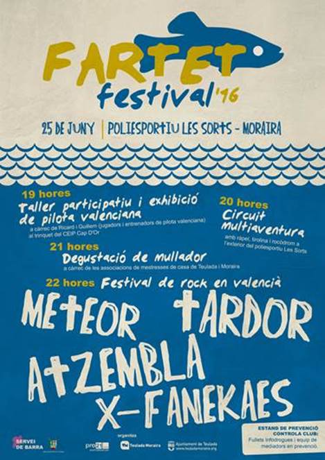 Aquest dissabte a Moraira (Teulada), La Marina Alta tindrà lloc una edició més el Fartet Festival. Rock en valencià amb Tardor, Meteor, X-Fanekaes i Atzembla com a protagonistes de la nit.