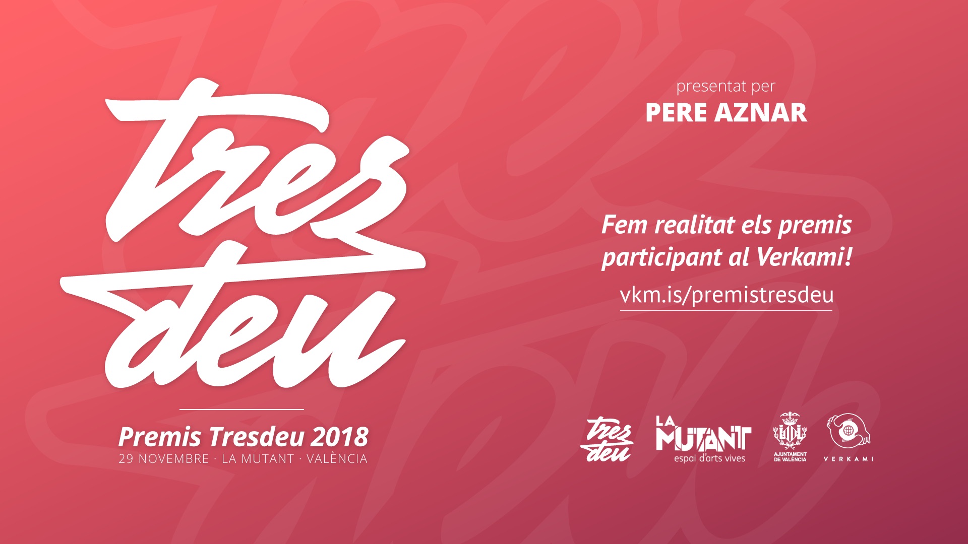 Des de Tresdeu, poc a poc anem desvelant les informacions relatives als guardons que estem organitzant per reconèixer el talent i l’esforç dels joves valencians més creatius. Amb més de 200 propostes inscrites i més de 30.000 vots fins ara a les votacions preliminars obertes a la nostra web, els Premis Tresdeu van camí de convertir-se en una experiència participativa sense precedents.