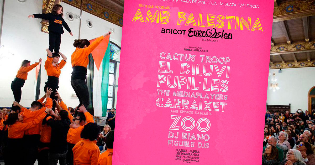 El proper dissabte 18 de maig se celebra la 64a edició del Festival d’Eurovisió a Tel Aviv, Israel. En contraprogramació, el BDS País Valencià ha organitzat el mateix dia un gran Festival Solidari amb Palestina. Amb intenció també de frenar la campanya de blanqueig internacional de l’Estat israelià. La Sala Repvblicca de Mislata acollirà aquest gran concert amb Cactus, el Diluvi, Pupil·les, The Mediaplayers, Carraixet amb Spyros Kaniaris, ZOO, Biano i Figuels dj’s.