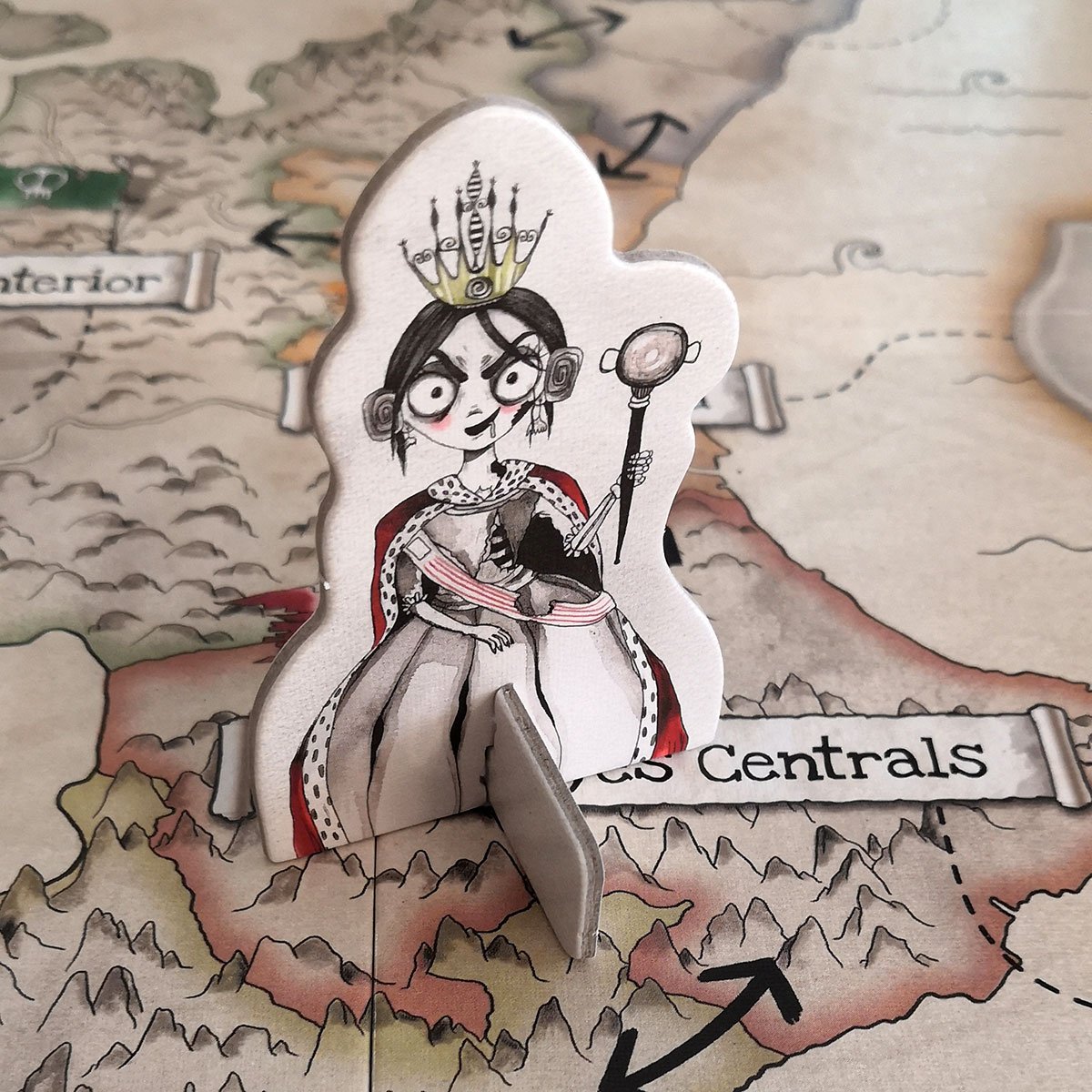 El tauler representa el mapa del Regne de la Fallera Calavera (una versió del territori valencià) sobre el qual els jugadors podran desplaçar un peó de la Fallera. El Regne està dividit en 5 caselles, anomenades terretes. En funció de la terreta on es trobe la morta, ella demanarà els menjars típics d’una o altra zona i activarà efectes especials i bonificacions d’algunes cartes. Voldrà figatells i coques de dacsa? O potser demanarà ximos i llagostí de Vinaròs? A més, cada moviment que facen els jugadors implicarà agafar una carta del tauler. Hi haurà més capacitat de tria i menys atzar en esta versió renovada del joc.