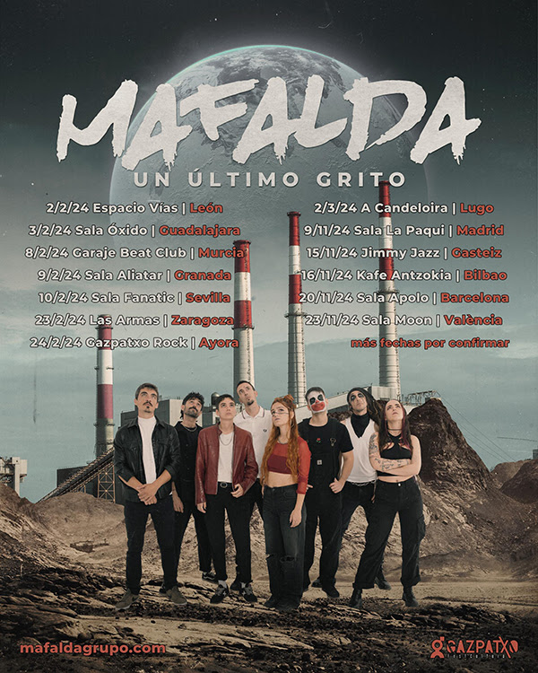 Mafalda, el grup que va nàixer a Camp de Túria l’any 2010, han confirmat el seu acomiadament dels escenaris. Una última gira que té com a títol “Un último grito” ens deixarà concerts per ciutats com Bilbao, Barcelona i València, on tindran el seu últim concert a la Sala Moon, el pròxim 23 de novembre de 2024.